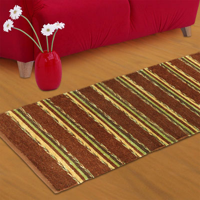 Chiếc thảm sọc sẽ là một phần không thể thiếu trong bộ sưu tập cho những ai thích phong cách đồng quê. Loại thảm có sọc nhiều màu theo ngẫu hứng rất dễ kết hợp với những căn phòng màu xanh lục hay xanh lá cây làm chủ đạo.